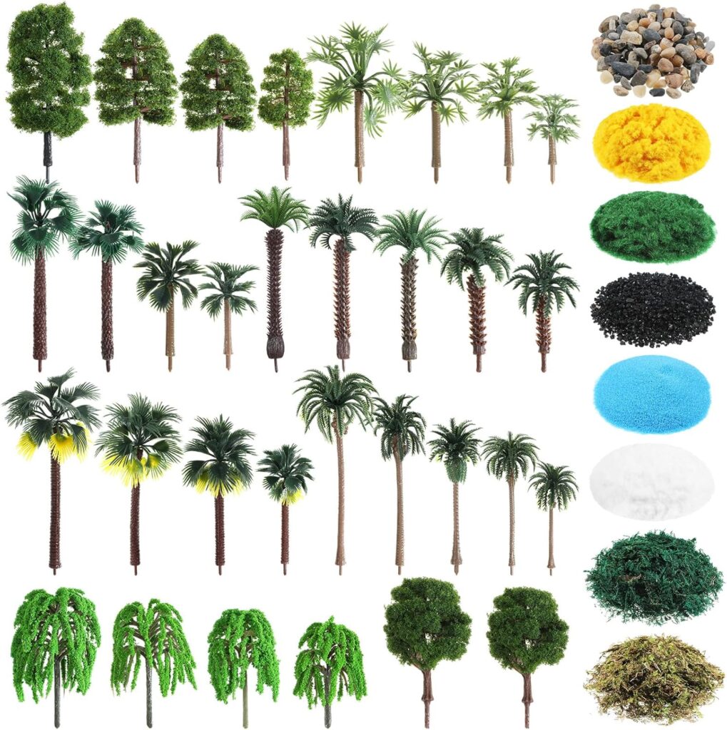 Thiccywoov El kit de 40 piezas de suministros de diorama incluye 32 árboles en miniatura